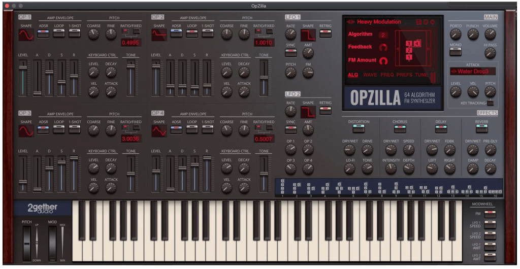 Il nuovo Opzilla, sintetizzatore fm a 64 algoritmi, waveforms selezionabili e feedback a multioperatore, si può acquistare con una donazione minima di $10, davvero un prezzaccio.